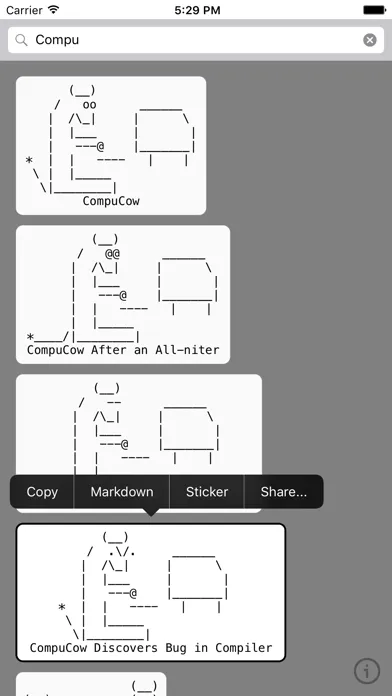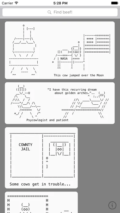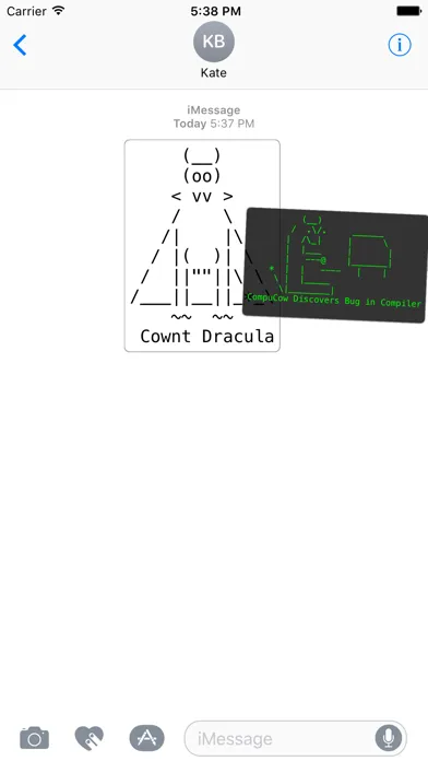 ASCII Cows also includes a Messages app extension (iOS 10+ only). Use it to create a list of your favourite Cow stickers.