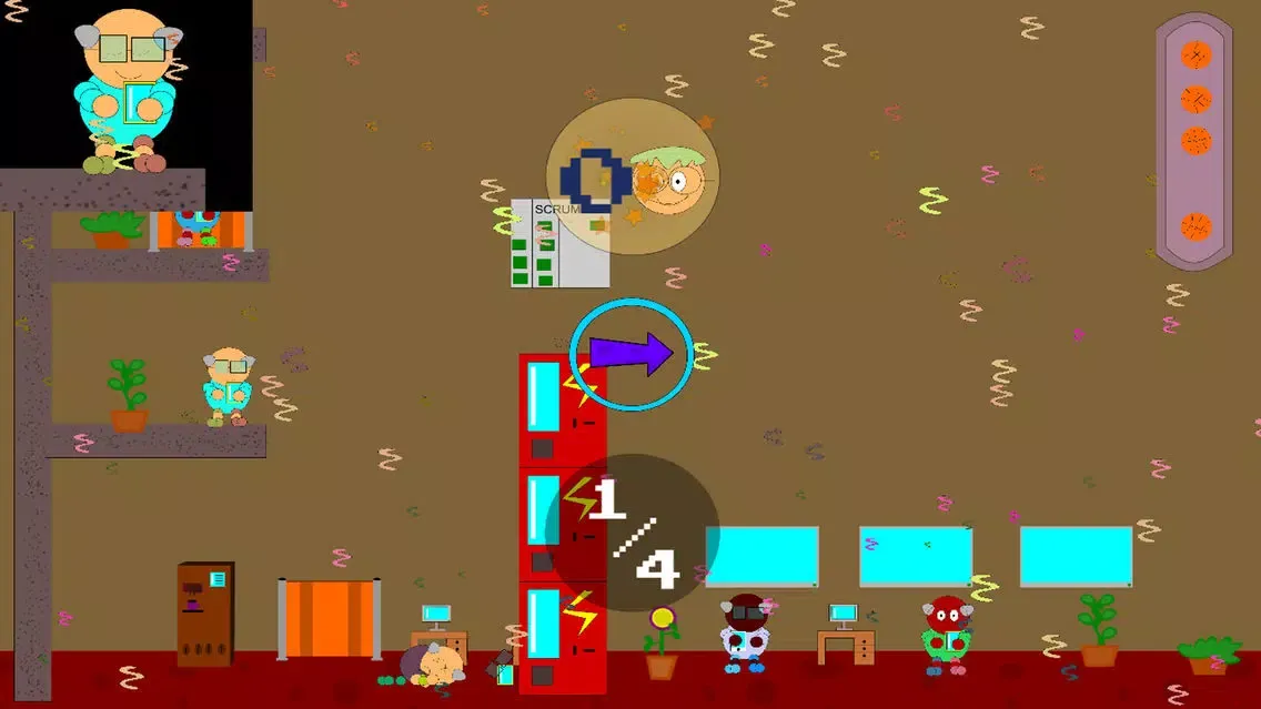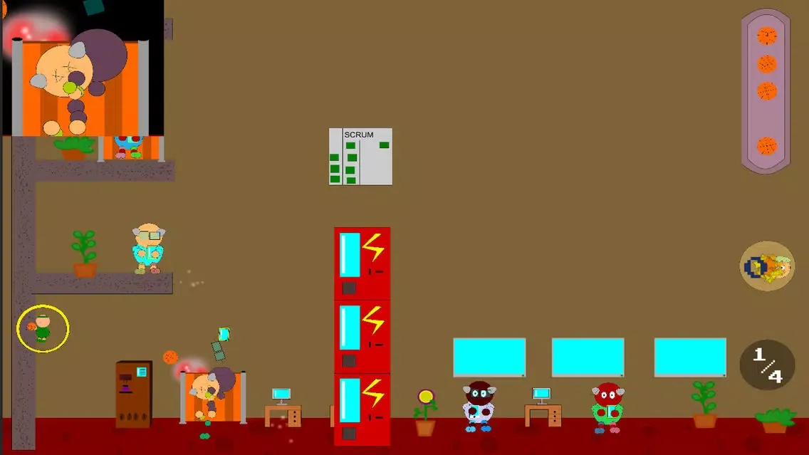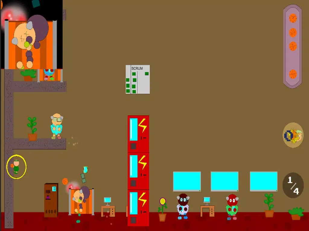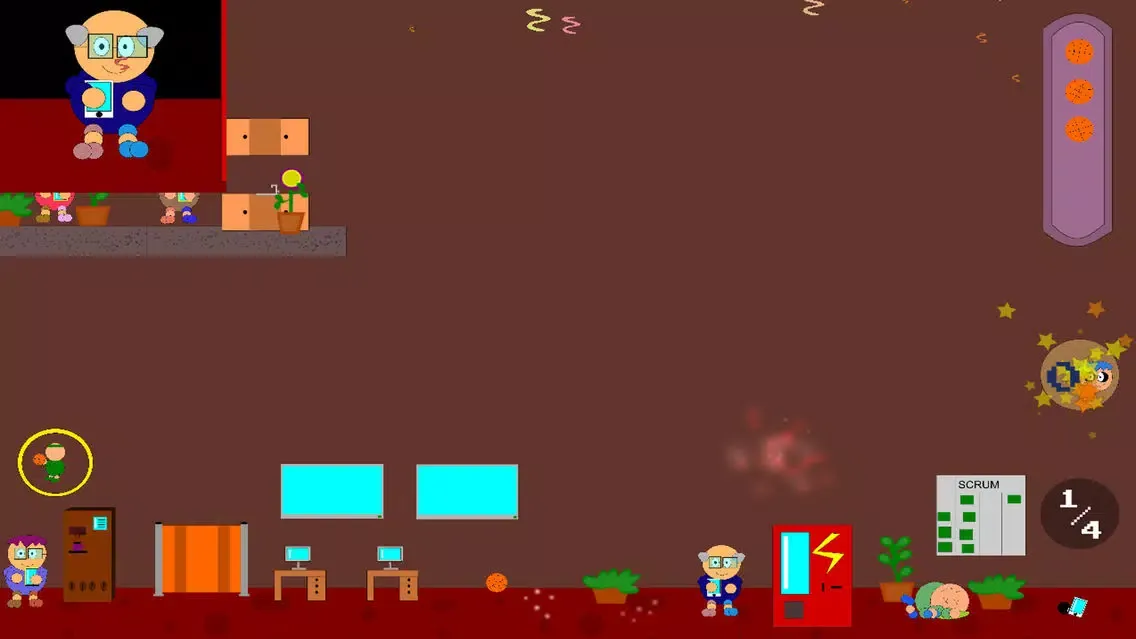 Each level contains of 4 stages where more and more geeks need to be hit with the basketballs.