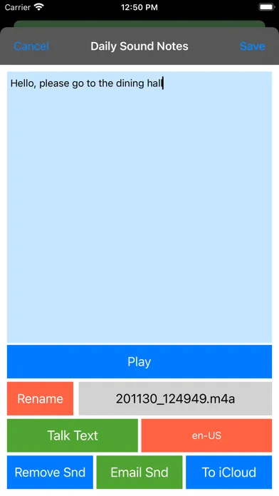 3.3 In the single note view, tap the play button to play the sound, tap the talk button to talk the text.