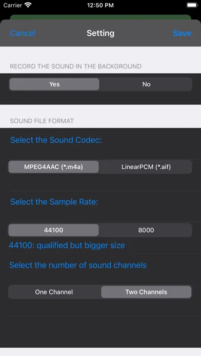 6.3 If the recording action is in the background, the user uses other sound related App, the recording action in the background will be stop and the sound file will be saved.