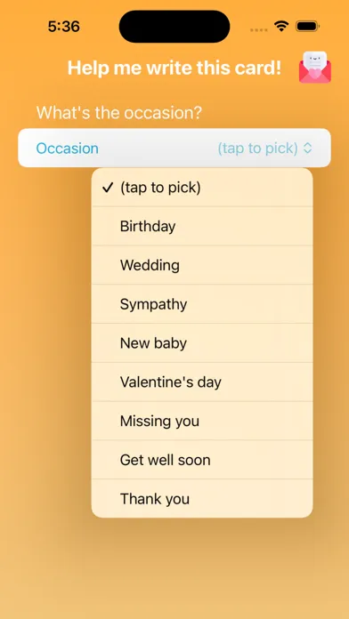 Let us help... just tap in the occasion, recipient, and if you want it to be funny or touching and we’ll create the perfect message!