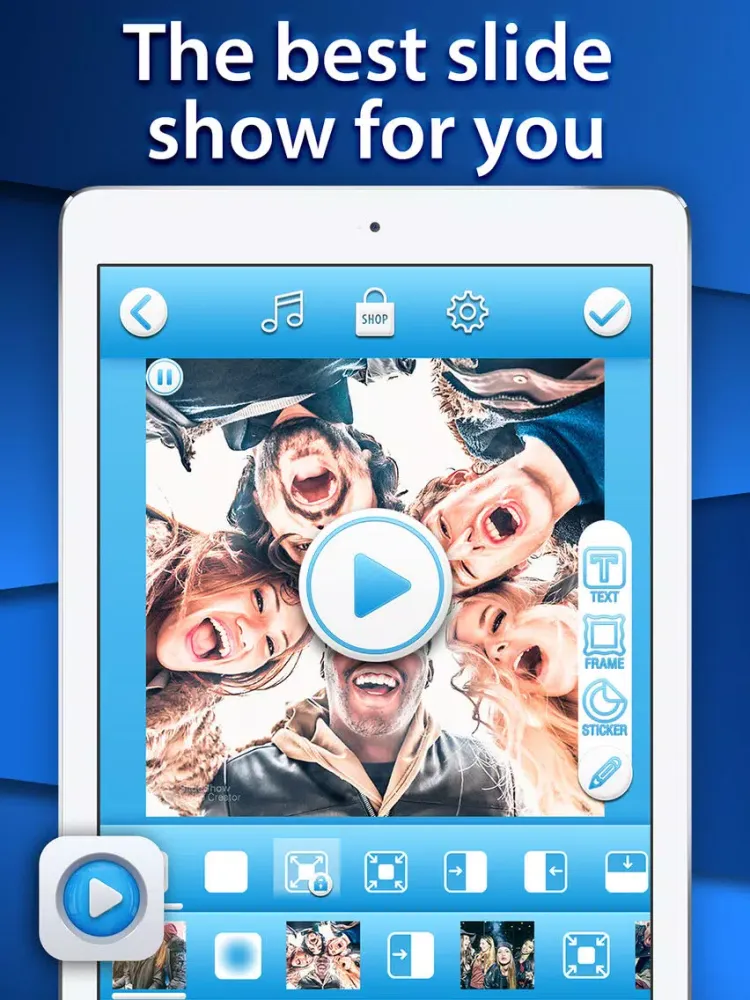 Make an instant slideshow video with your photos. Simple and incredibly easy to use with tons of options and customizations. Share your stories and memories with your friends on social networks. Surprise your loved ones with custom slideshows of your happiest moments. Please leave a rating and send feedback to help us improve our app and make it better.