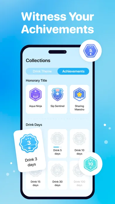 - Feel accomplished by reaching your daily hydration goals and earn badges as a reward.