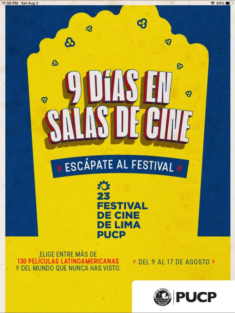 ¡Bienvenidos al 23 Festival de Cine de Lima PUCP!. Aquí encontrarás todas las novedades del Festival, la programación completa de las películas, eventos y videos. Podrás compartir toda la información que tenemos de esta nueva edición en tus redes sociales y agendar los horarios que quieras para ir a ver tus películas favoritas, todo esto desde la comodidad de tu celular. #EscápateAlFestival y disfruta de #9dias de puro cine. #EscápateAlFestival #FestivalDeCineDeLima #23FCL