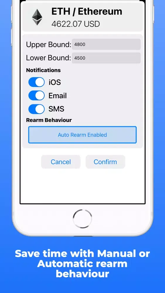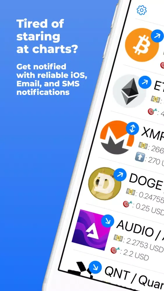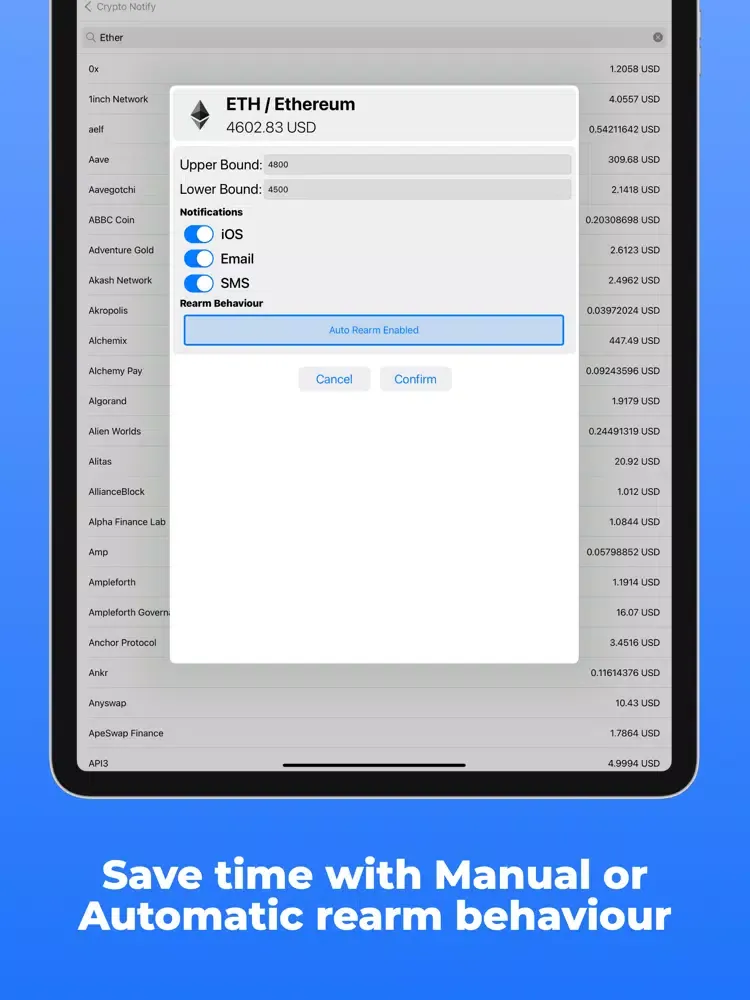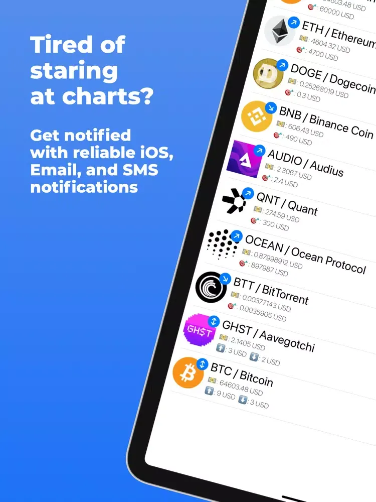 Rely on receiving your value notifications. Never miss a trade with our premium SMS functionality, bypass any notification filtering and get your cryptocurrency value notifications texted right to your phone.