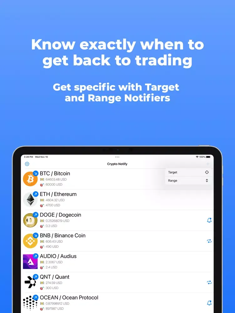 Crypto Notify was designed to be the fastest and most reliable cryptocurrency notification system on the App Store. We want to help you spend less time staring at charts by relying on our notifications to arrive exactly how you want them to.