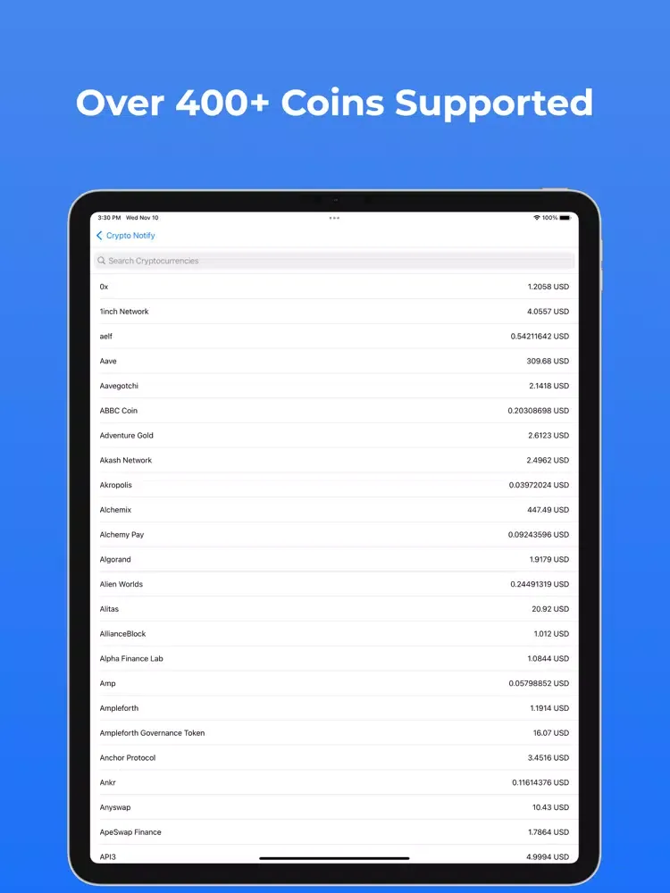 SUPPORT FOR 400 CRYPTOCURRENCIES