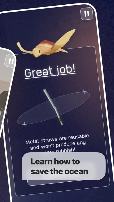 Next, the app builds this great bond between us and animals. All because of introducing the game hero - Victor. This little sea turtle is our guide through our underwater quest and the possible solutions to water pollution. His vulnerability to ecological dangers shows how important it is to take care of ocean life.