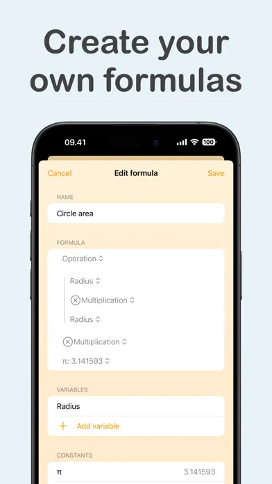 • Custom Formulas: Easily design and save your own formulas for quick access.