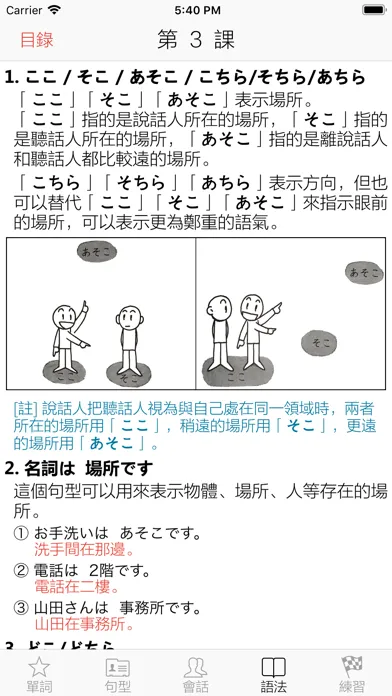 2. 分為單詞,句型,會話,語法和課後聽力五個部分