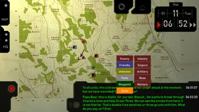 - 15 unit types, including: infantry, evac choppers, gunships, field artillery, aerial reconnaissance, M113 armored personnel carriers, and napalm-carrying F4 Phantom jets (every unit is described by a unique set of statistics and communicates with commander using a different voice),