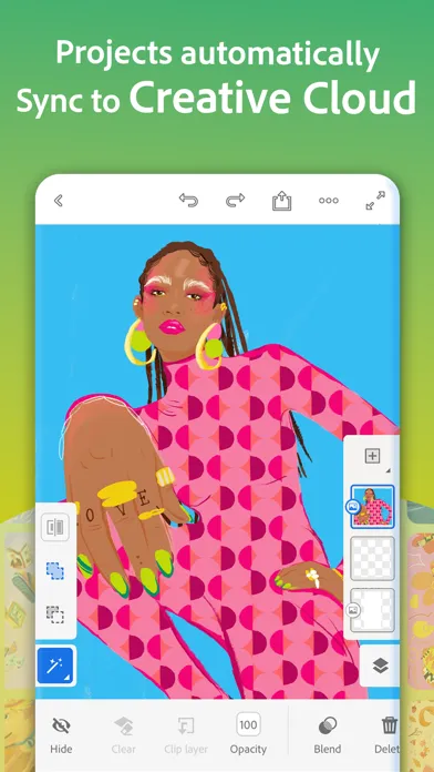 • Seamless integration with Photoshop and Illustrator — Open documents in either app without importing or exporting. Send your layered vector illustrations directly to Illustrator for desktop or iPad for finishing touches.