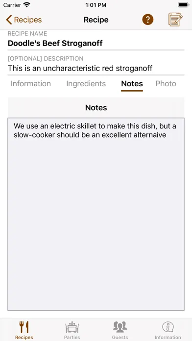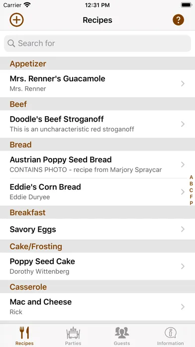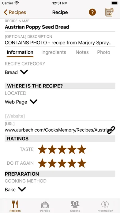 Cook's Memory does not store recipes; rather it stores information about recipes, including where to find them. If you enter your favorite recipes into the Recipes Tab (which should be much faster and easier than entering the details of the recipe itself), then Cook's Memory can help you find a recipe you want, pick between recipes, and help build a menu.