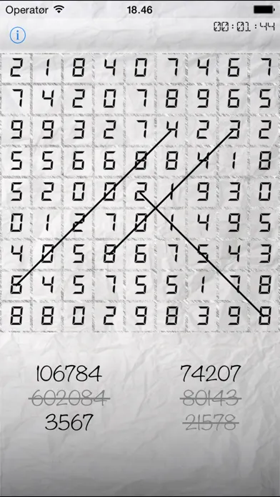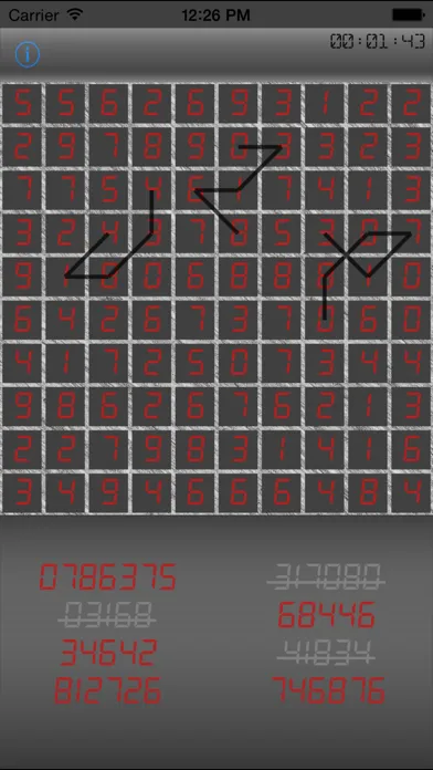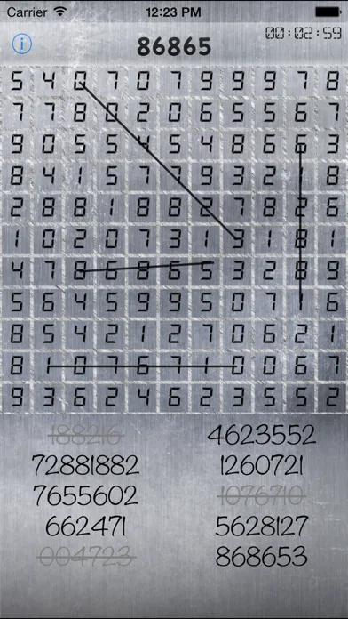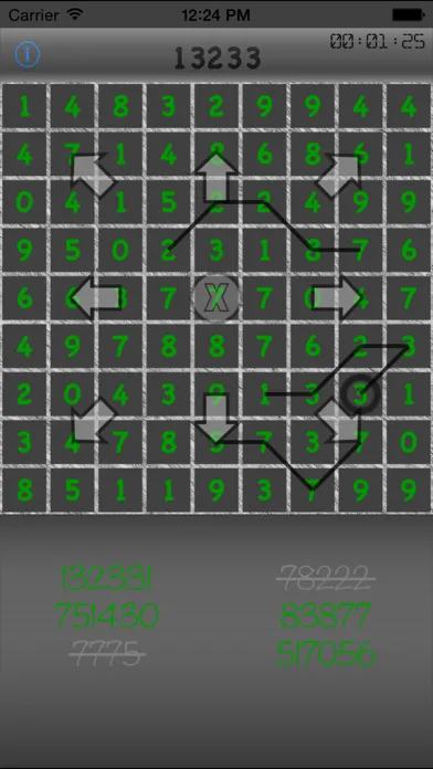 puzzle game where you have to find and cross out all given numbers in digits matrix.