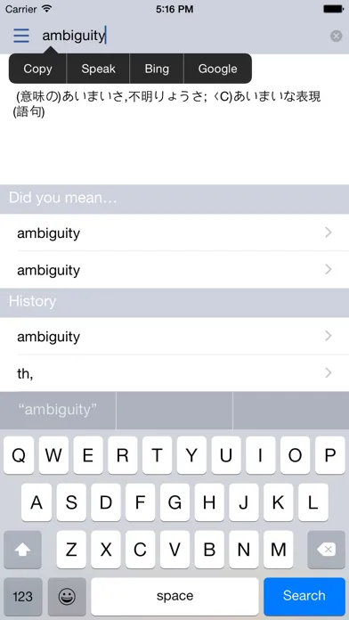 It displays definition as you type. You don't even need to tap "Search" button!