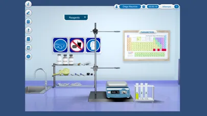 In this practice it is possible to carry out the synthesis of methyl benzoate, used in non-electronic heating cost distributors. To carry out the synthesis, methyl alcohol, benzoic acid and sulfuric acid are available. The simulator recreates a chemistry laboratory with a three-mouth balloon, pipettes, a reflux column, a thermometer, an ethyl ether test, a Schiff test, and a hydroxamate test, among other instruments and supplies necessary to perform the synthesis.