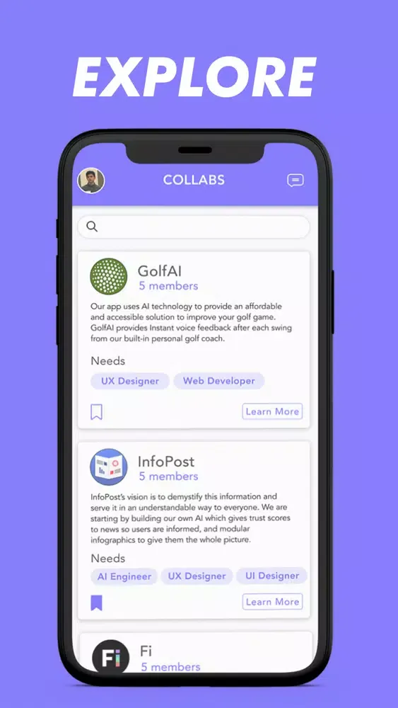 Collabs is the official innovation platform where university students can come together, build their team, and bring their ideas to life. Students thrive on projects in order to get the experience they need to succeed... But how do you find a cool project to work on? What if you have an idea but need teammates? How do you convey to others your idea is worth working on?