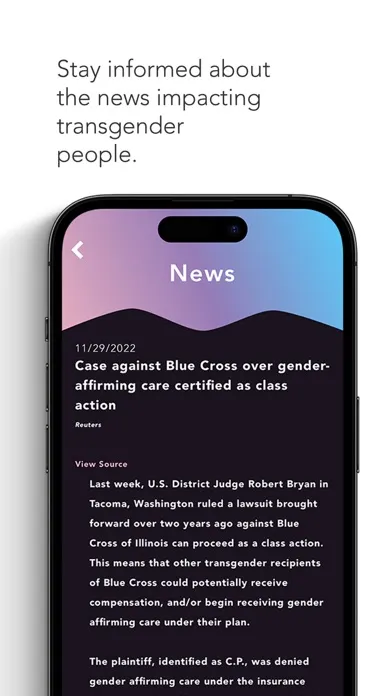 The application customizes the experience based on the user's pronouns (that can be fully editable), and state of residence to maximize the relevancy of the information and provide maximum affirmation.