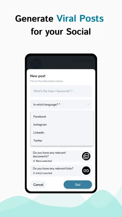 - Generate Viral Posts for your Socials: Optimization for Facebook, Instagram, Twitter, and LinkedIn based on each platform's best practices.