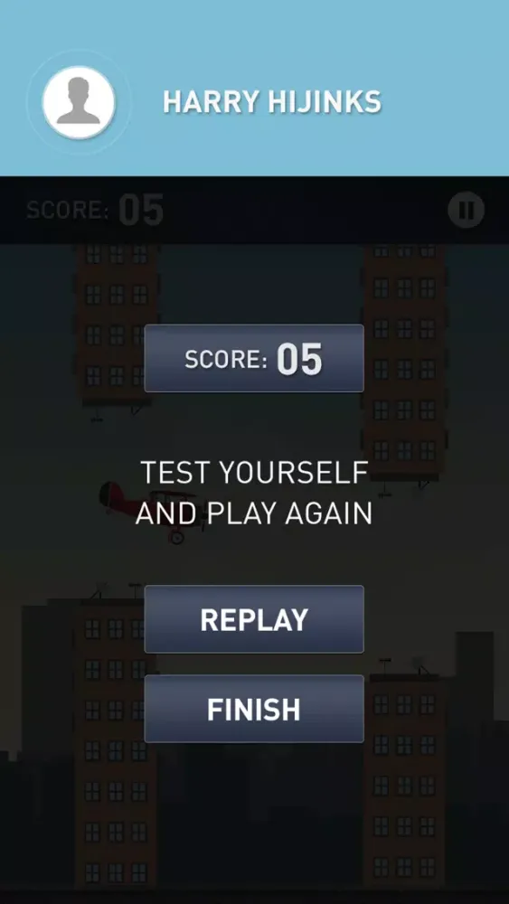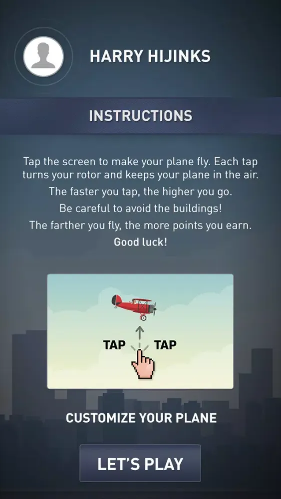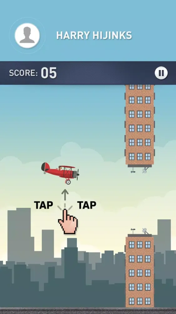 Harry Hijinks is a fast-paced challenging game of skill. Keep your airplane flying and dodge the buildings to score points. The farther you fly, the more points you earn.