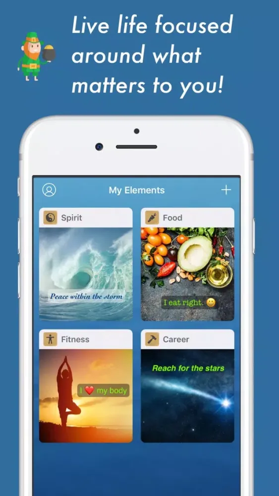 Pick elements for areas of life that are important to you - like Spirit, Fitness, Family, Career.