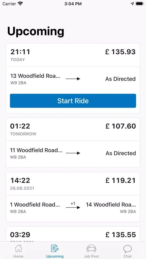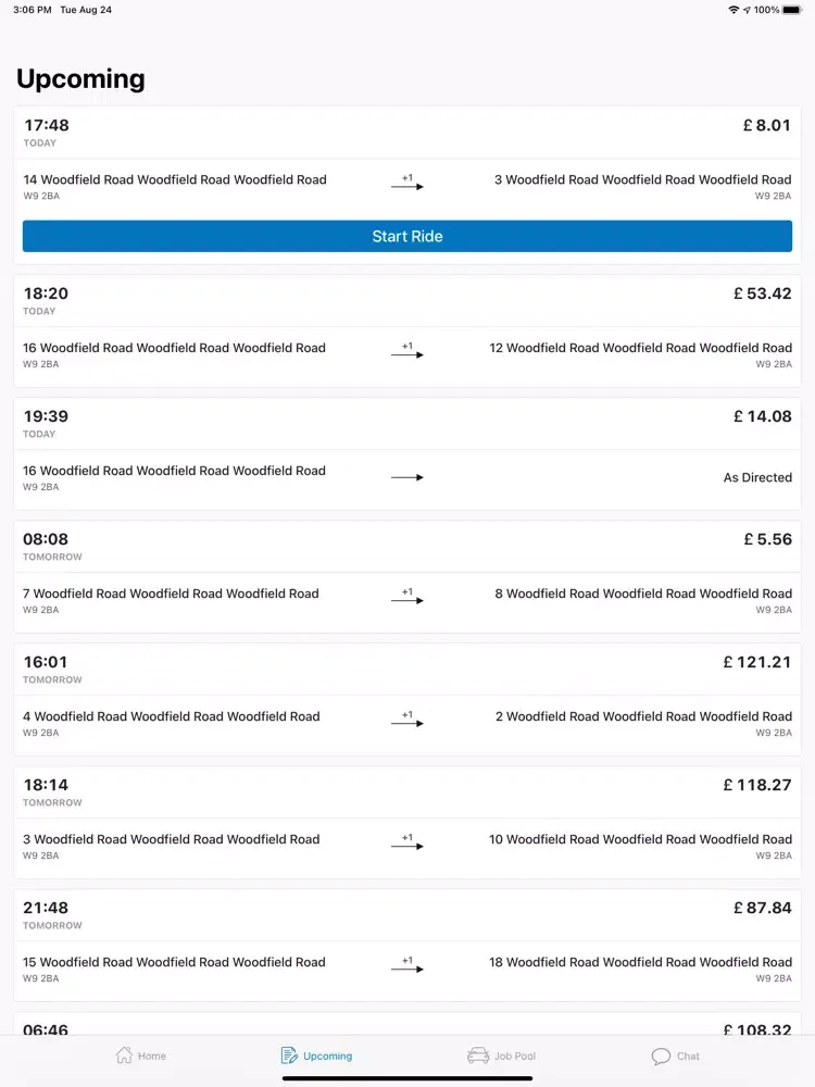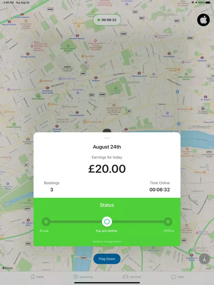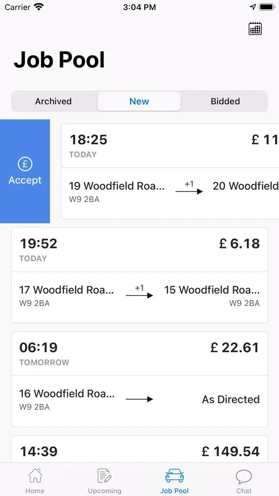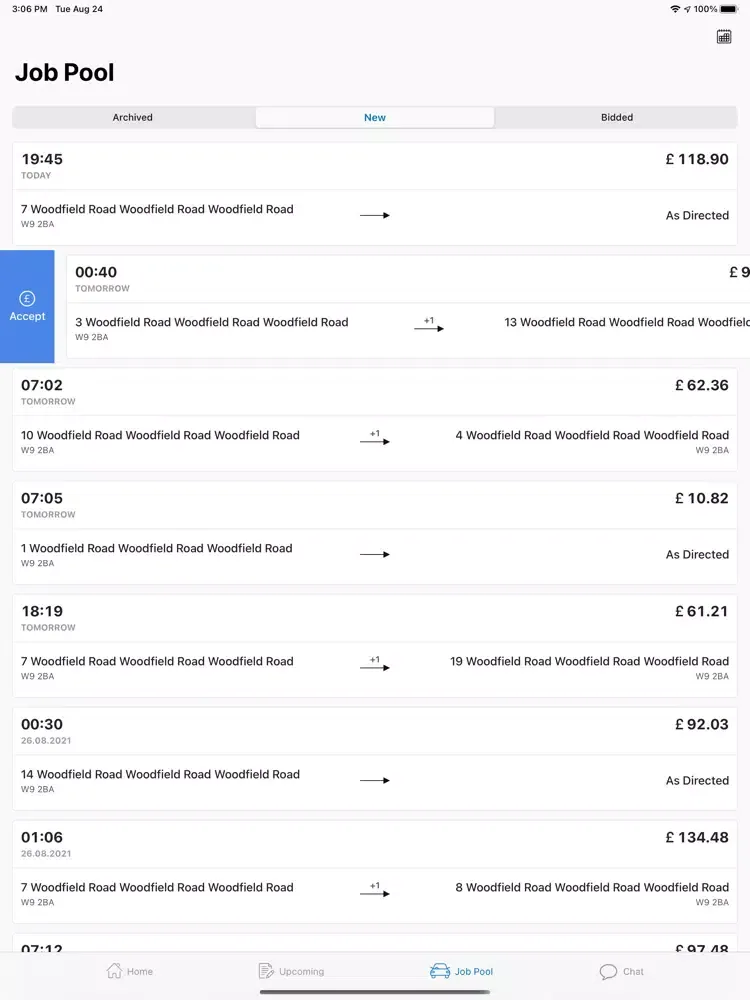 see upcoming and past bookings, accept or reject jobs, bid for jobs, see account