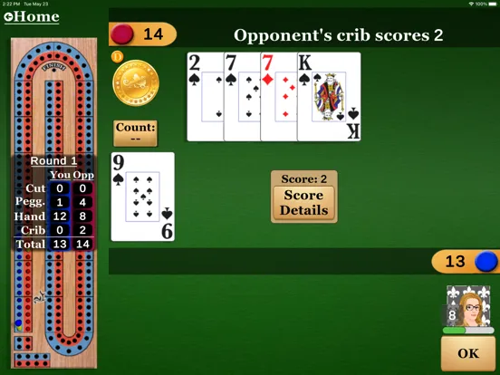 - Play cribbage with grandpa, your kids, just your friends or against the computer