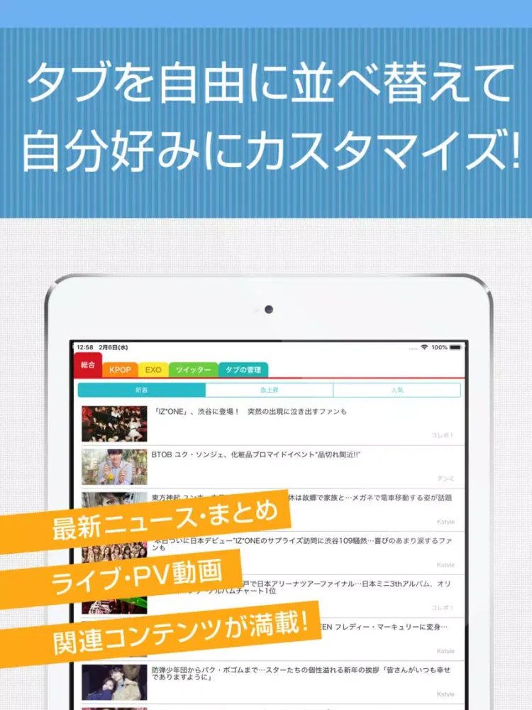 タブを自由に選択並び替えできるので、見たい情報にすぐアクセスでき情報収集の効率化ができるアプリならではの機能も搭載しています。