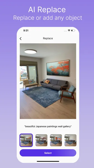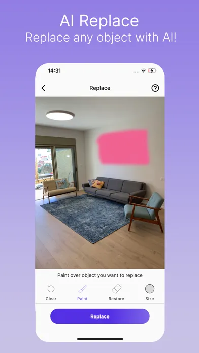 -Mark objects in your interior images and let AI effortlessly replace them with another object of your preference.