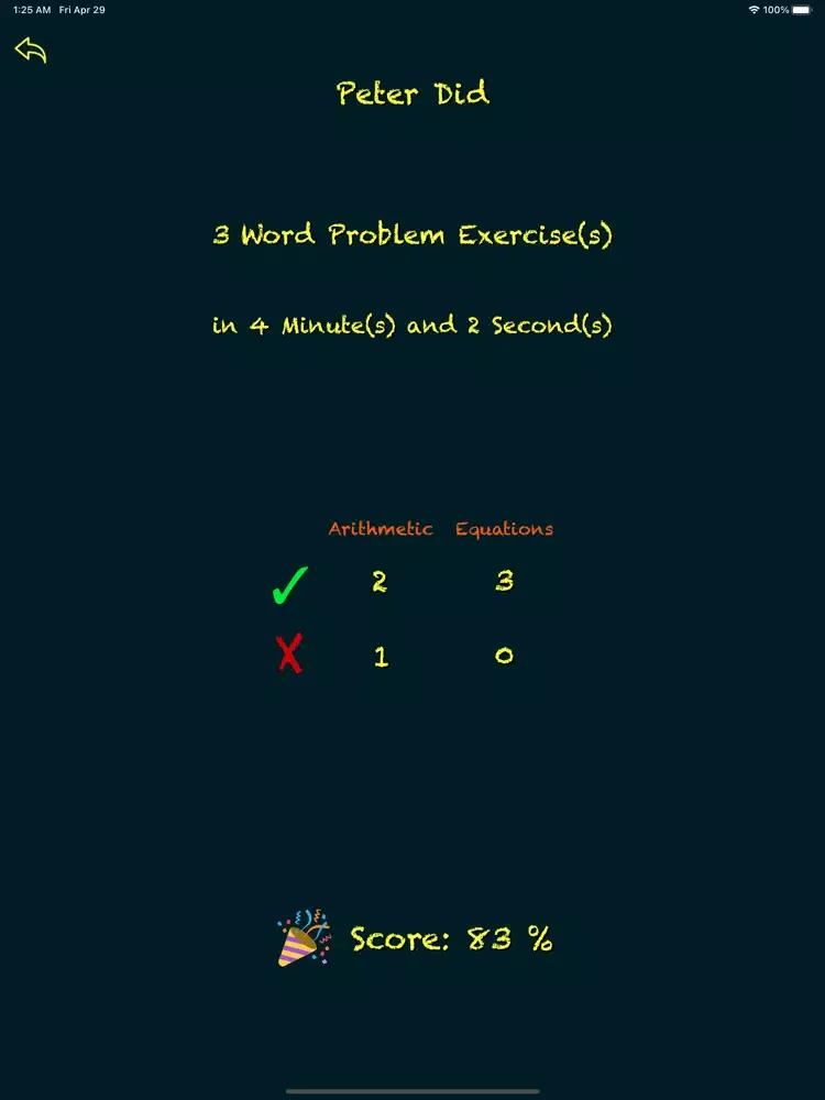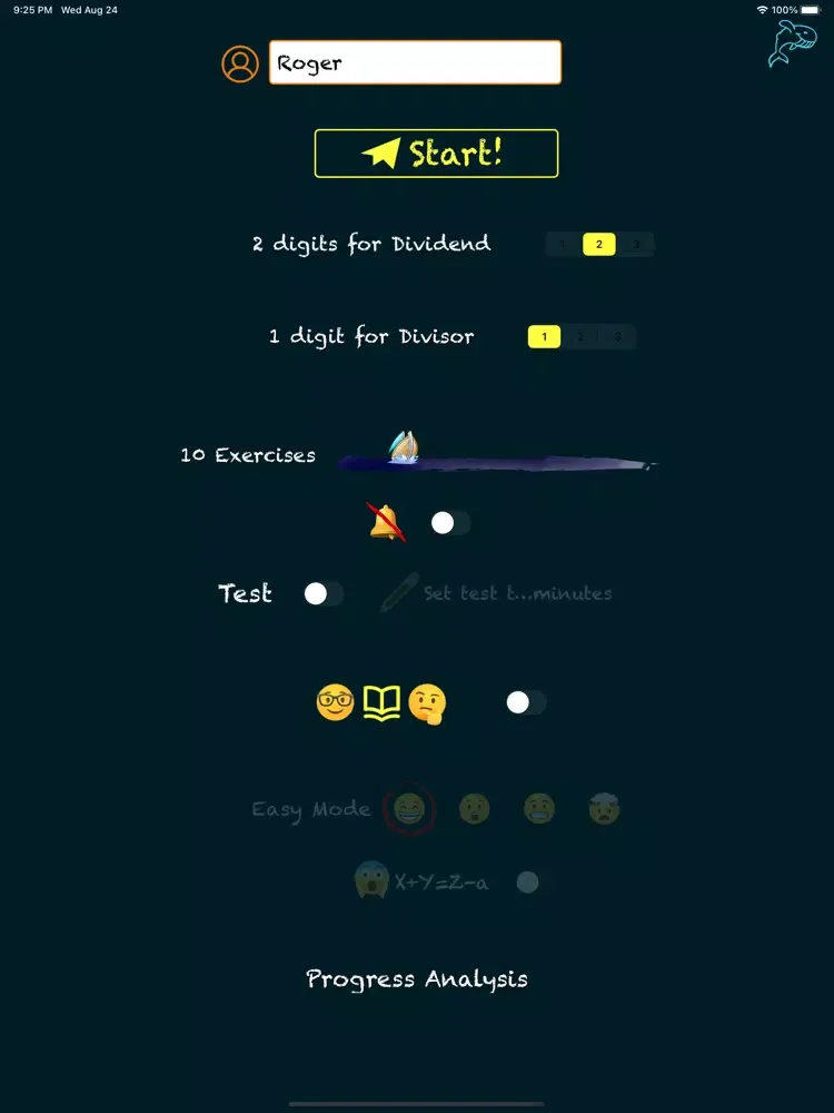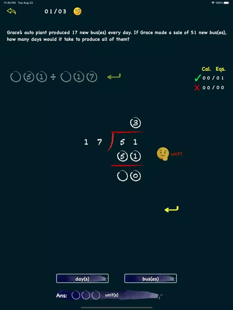 Math Division ÷ is an iPad application with features including 1) word problem section to help students develop their word problem solving abilities, 2) the Hint option in the practice mode, 3) the Exam Mode to test students division operation skills, and the 4) Progress Tracking system for parents, teachers, and tutors to understand student's learning progresses.
