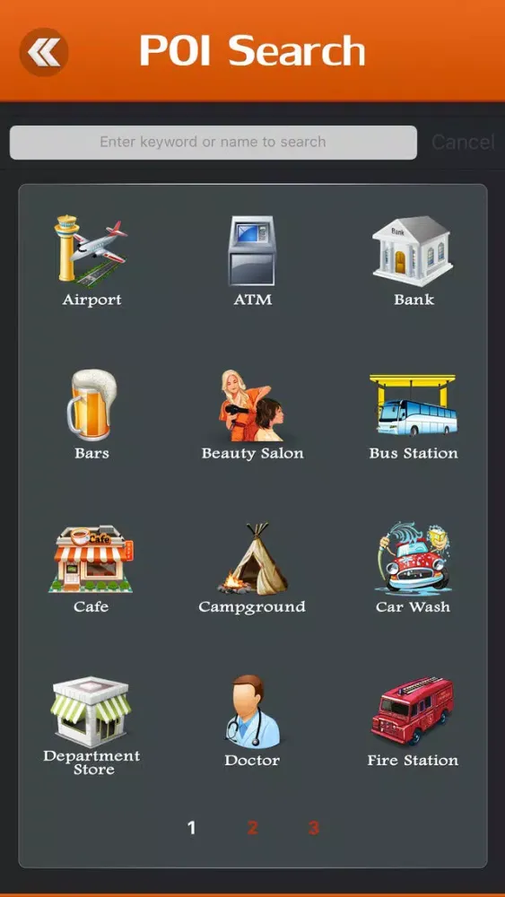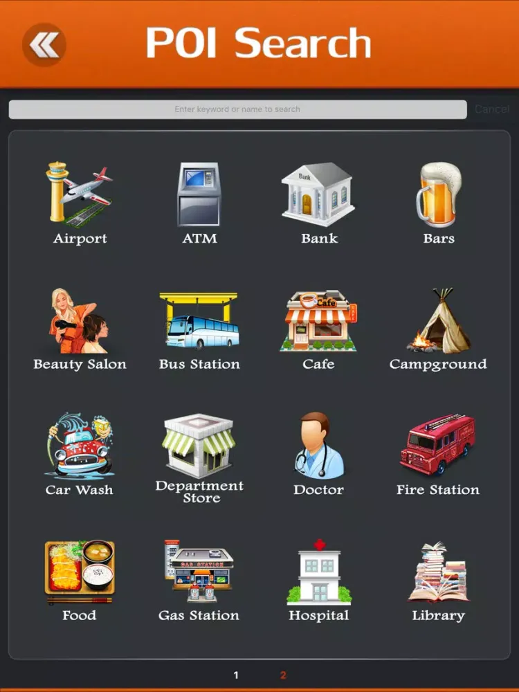 Airport, ATM, Bank, Bars, Beauty Salon, Bus Station, Cafe, Campground, Car Wash, Department Store, Doctor, Fire Station, Food, Gas Station, Hospital, Library,Lodging, Mosque, Movies, Museum, Park, Parking, Pharmacy, Pizza, Police, Shopping, Stadium, Taxi, Train Station, Travel Agency, University, Zoo.