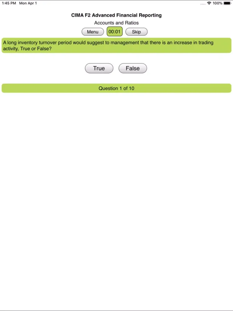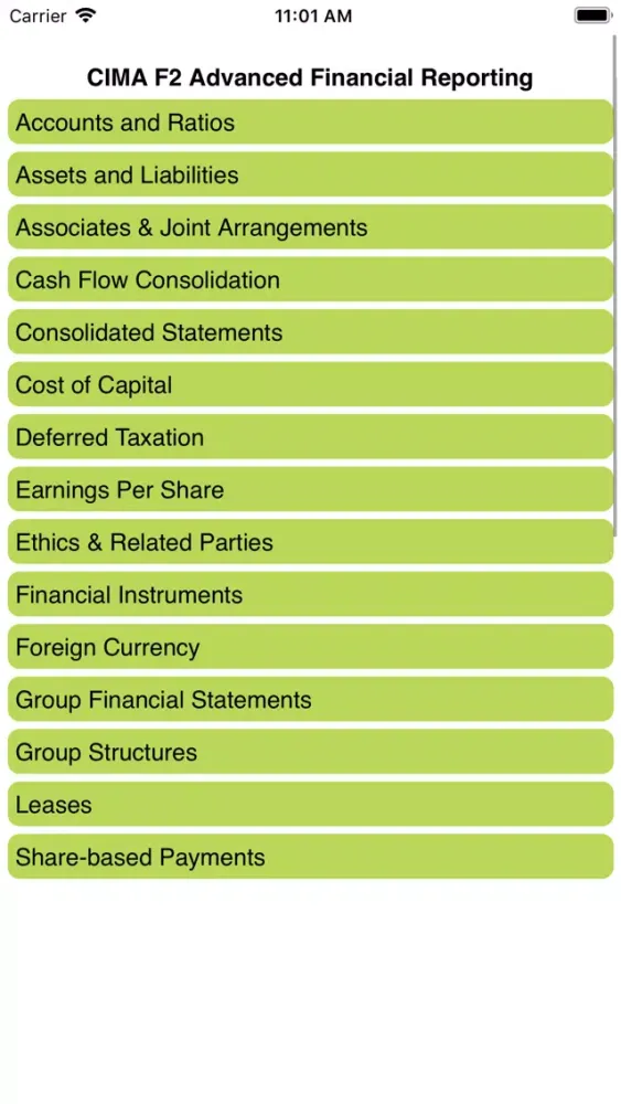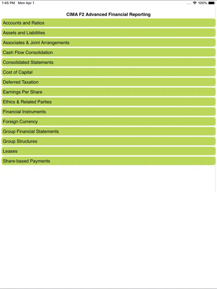 Zrzuty ekranu CIMA F2 Adv Fin Reporting iPad