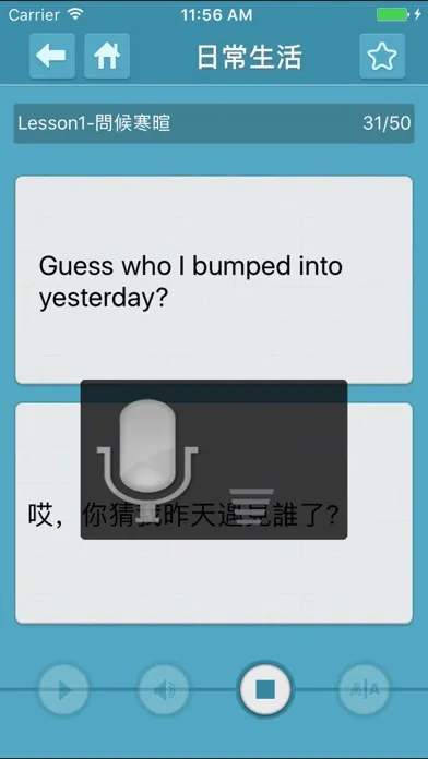 ・邊聽邊學習,邊學邊練習,發現問題或難點時,可以點擊按鈕收藏此句以便以後復習之用;