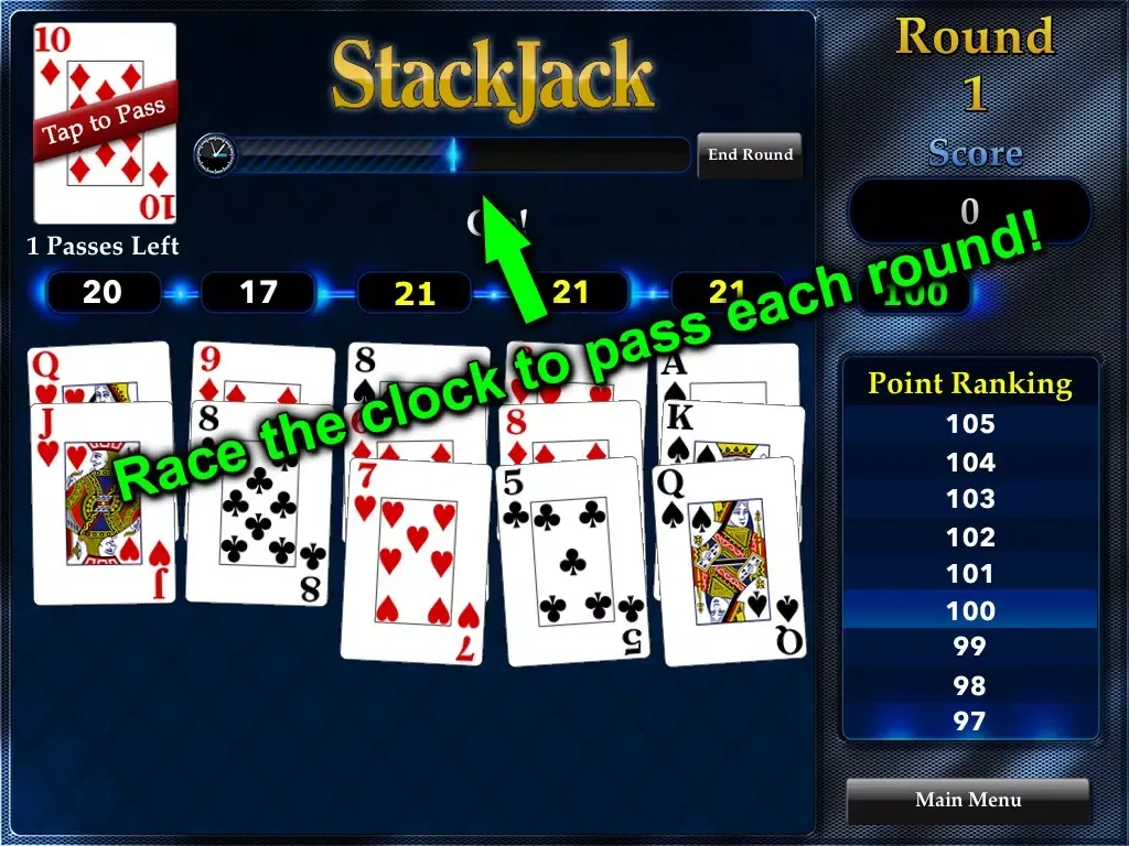 StackJack Free: Blackjack Meets Solitaire in an Arcade Casino Card Game