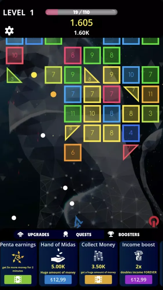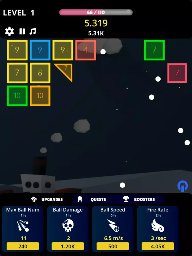 Collect millions of coins to buy your upgrades (like ball upgrades, ball damage, fly rates etc), improve your stats and reach higher levels. The boosters can be of extreme help to pass some of the hardest levels. Also make sure to collect coins or use the in-app purchases which can be of additional help! Get extra motivation by improving your place on the global leaderboard. Fully enjoy an exciting ball shooter!