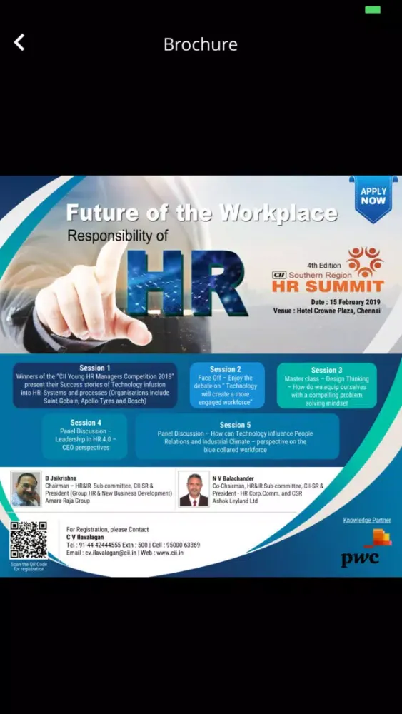 Confederation of Indian Industry (CII) is organizing HR Summit 2019 with the theme ‘Future of the Workplace – Responsbility of HR’ on Friday, 15 February 2019 at Hotel Crowne Plaza, Chennai. This apps keep you up to date regarding the information on the event and connect to colleagues attending the event.