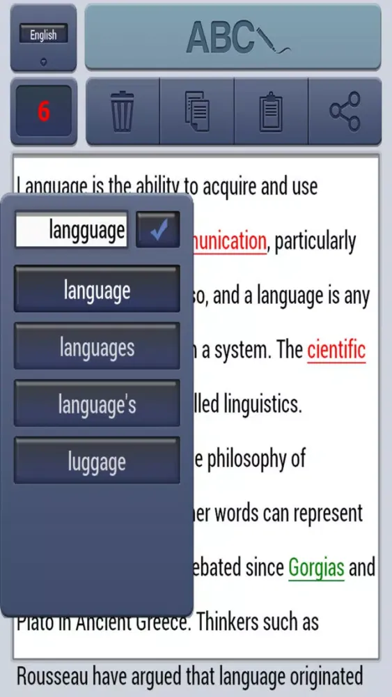 This quick, compact and easy to use spell checker app allows users to paste in, or directly input their own text and then check the spelling accuracy. The app will spell check the entire text and highlight any spelling mistakes and offer users a variety of alternative spellings and words that they can quickly select to automatically update their text. Once the spell checking has completed users are able to quickly copy all their text to paste it into emails, directly onto websites, print or anywhere else their text is to be used. With the Share button sharing work to email, WhatsApp and various other apps and media couldn’t be easier.