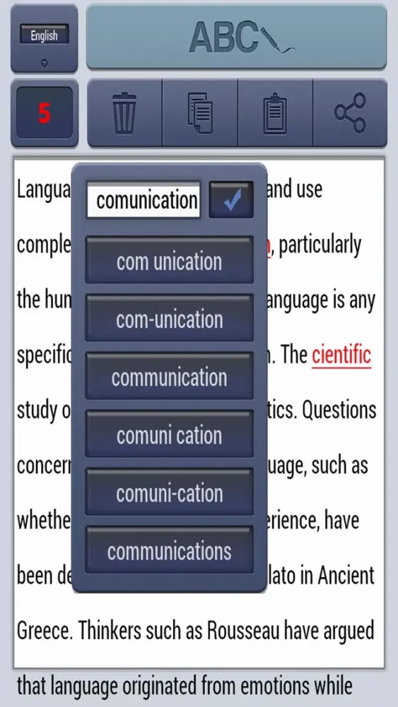 - A Share button to quickly share text with other apps and media platforms