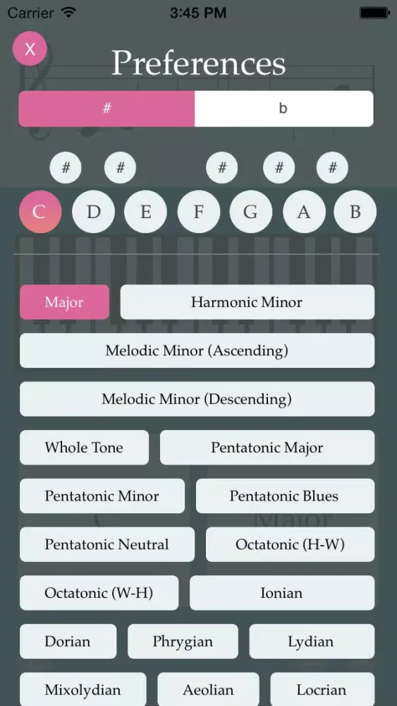 Learning to play scales or just having bad time remembering how to strike a note? This app was created to make scales learning a snap! Just choose a root note and a mode and the app will show you how to play it.