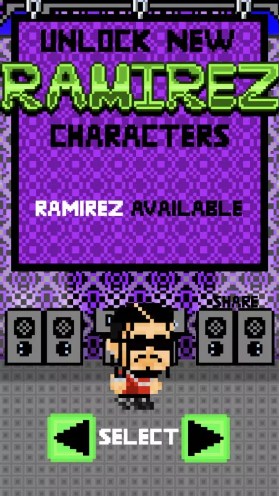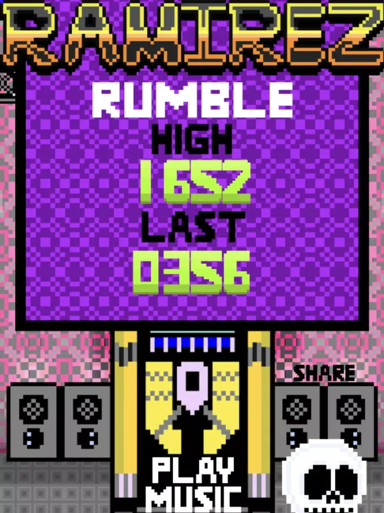 Ramirez Rumble is a simple but fun retro style & unique app-tape/mix-game. Simply smash the jukebox to earn a point & keep the hits playing! Avoid 'GAME OVER" by tapping on the opposite side of the screen to avoid, falling lights & girders. Ramirez Rumble contains a very unique soundtrack featuring never before heard blends & remixes. Unlock additional music, outfits & characters with your highest score. Compete worldwide with the game center leaderboard & get all the game center achievements. Thanks for supporting independent artists & gaming, & helping us create more!