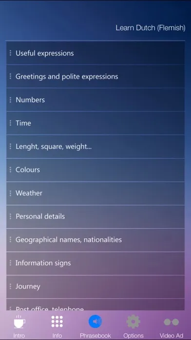 * App is for people who know English and want to learn the basics of FLEMISH language.