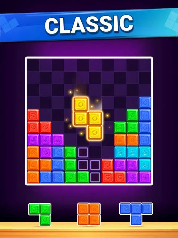 • Classic – New to block puzzle games? Start here. This endless mode lets you practice filling and blasting pieces forever.