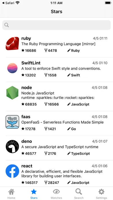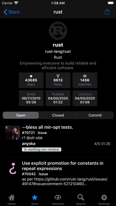 Zrzuty ekranu Repository Stream for GitHub