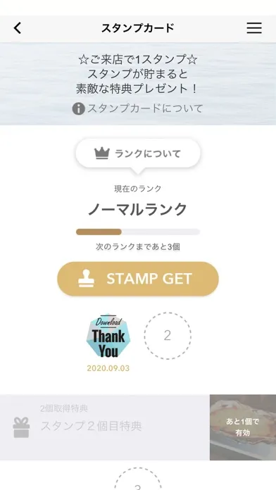 来店ごとに付与されるスタンプを貯めるとお得な特典がもらえます!