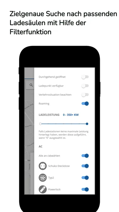 • Tarife, Öffnungszeiten und Steckertypen lassen sich problemlos Filtern