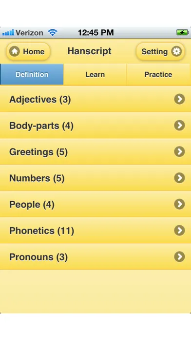 Grids are now optionally displayed during practice mode. Go to Settings page to enable or disable the grids. The grid helps one to copy the Chinese character more easily onto paper. Two type of grids are provided: square and diagonal.