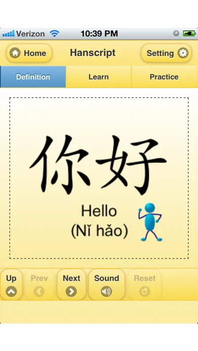 To help the user associate the Chinese word with the correct pronunciation, each word is automatically pronounced. This behavior can be turned off in the Settings page.