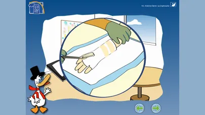 I "HC And - Gips og K-tråd" formidles udvalgte patientforløb i ortopædkirurgisk regi. Informationen er med speak - af en barnestemme - og animation i genren ”Læring gennem leg med tablet/mobiltelefon/touch-skærm”.