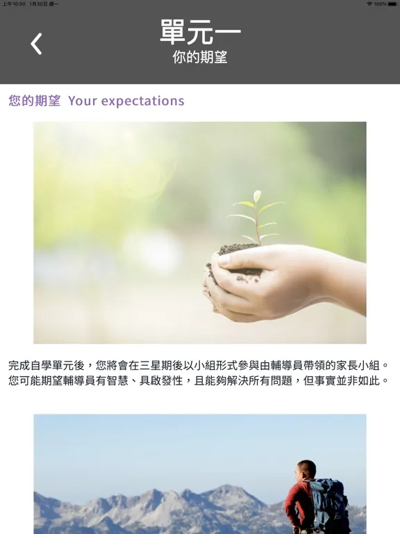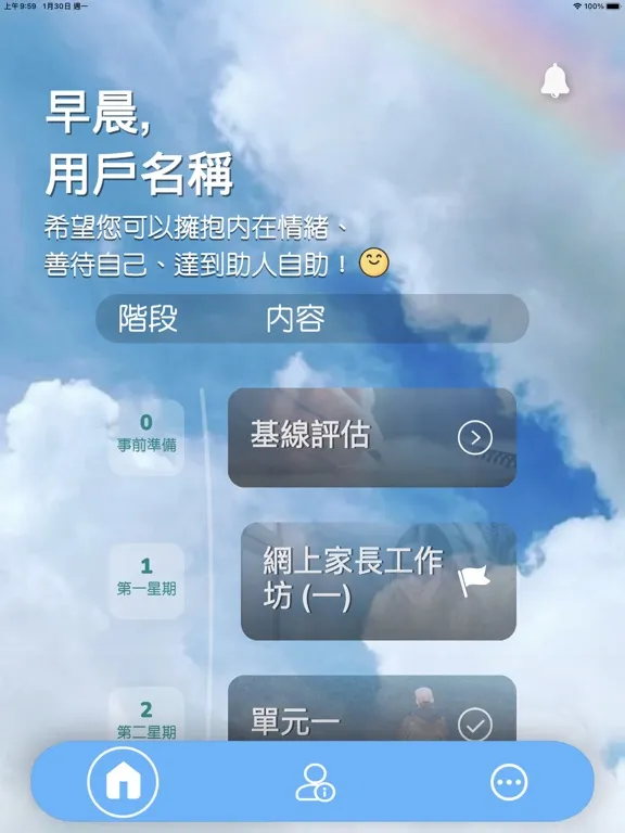 計劃受邀請的父母,可透過《護助互愛》手機應用程式瀏覽我們的計劃。內容包括定期網上課程和自學課程等。