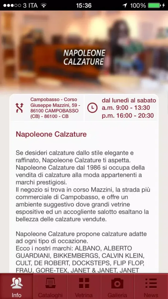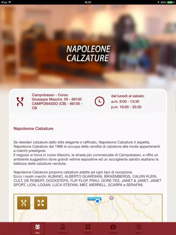 Il negozio si trova in corso Mazzini, la strada più commerciale di Campobasso, e offre un ambiente suggestivo dove grandi vetrine espositive ed un accogliente salotto esaltano la bellezza delle calzature vendute.